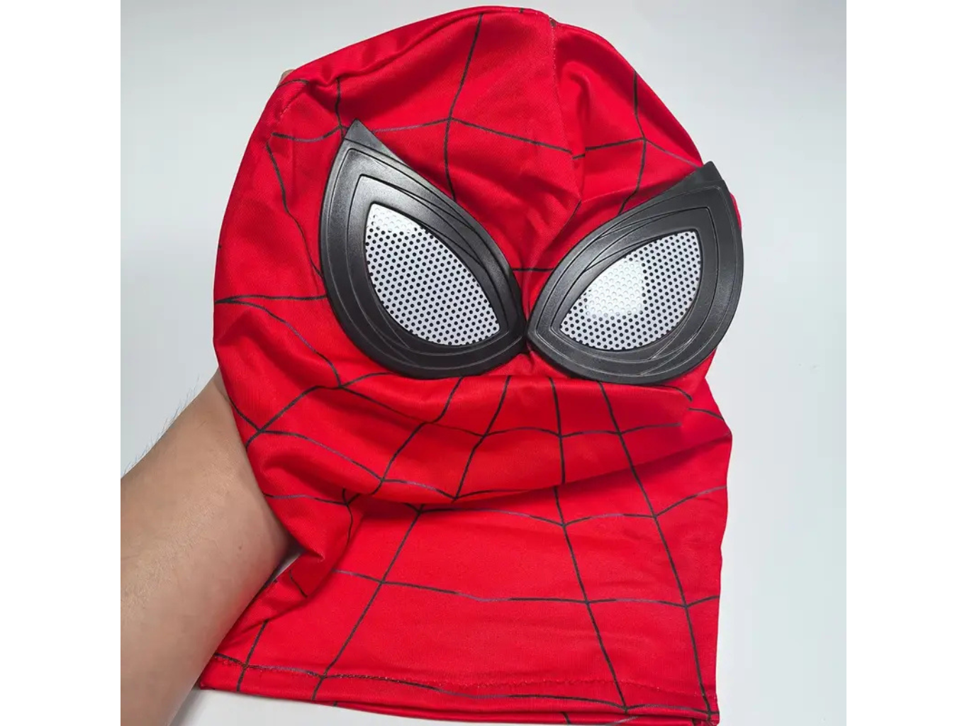 Maska Spiderman látková s plastovou obrubou kolem očí.