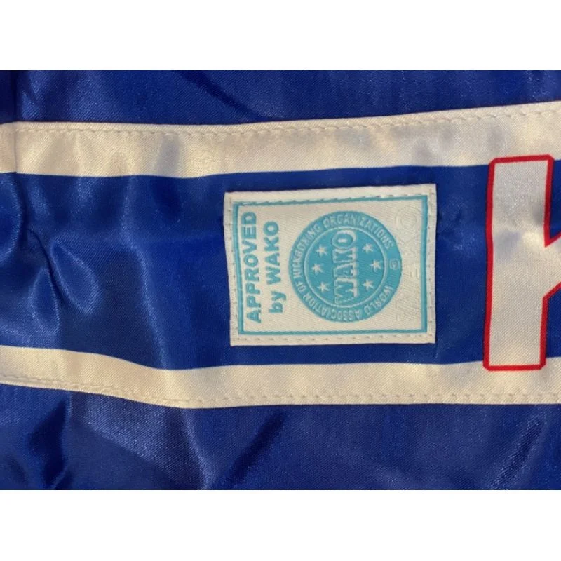 Vlastnosti: Dlouhé kalhoty pro kickbox. Ideální pro nejdůležitější soutěže nebo tréninky. Široká guma ve výrazné barvě a vnitřní šňůrky udrží kalhoty na správném místě. Extra velký klín umožňuje větší volnost pohybu a pohodlí při nošení šlí. Na jedné nohavici mají potisk s polskou vlajkou a na druhé logo WAKO - jsou certifikované pro soutěže v kickboxu. Model: Sportovní dlouhé kalhoty SKBP-100W Barva (k dispozici v nabídce výběru): černá, červená, modrá Velikost: XXXXS-XL Materiál: polyester Nohavice: dlouhé Šířka v pase: 8 cm Homologace Wako pro třídy A,B,C (poháry a mezinárodní turnaje). Balení: ne