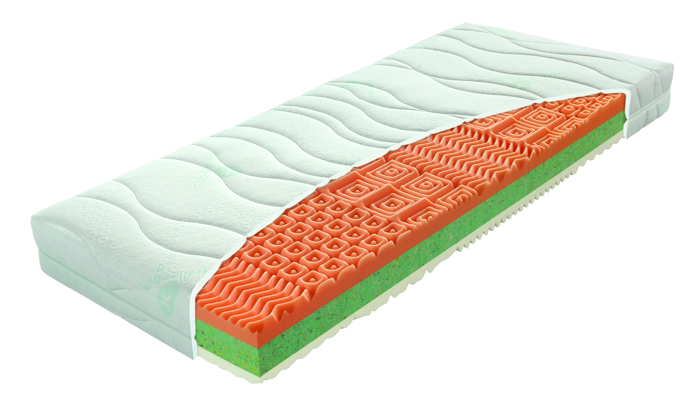 • jádro matrace - vysoce nosná RE pěna (zelená vrstva)