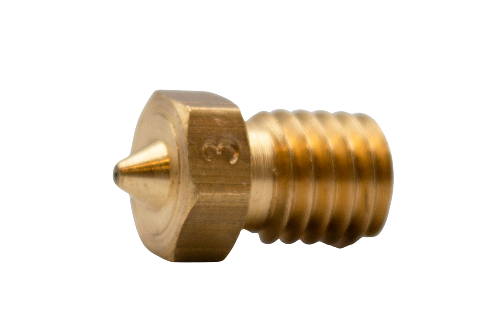 Kvalitní mosazná tryska 0,30 mm se závitem M6 vhodná k tisku 1,75 mm široké struny. Tryska je část tiskové hlavy (extruderu), která určuje jak detailní bude Váš výtisk. Použitím trysky s menším otvorem dosáhnete jemnějšího tisku, ale zároveň roste výrazně celková doba tisku. Nejpoužívanější je tryska o průměru 0,4 mm. Mosazná tryska má výbornou tepelnou vodivost a dobré mechanické vlastnosti a je proto vhodná pro většinu typů termoplastických materiálů (ABS, PLA, ASA, PET, PC, Nylon, ...), pouze v případě použití materiálů s vyšší abrazí (plast s příměsí kovových vláken, flitrů, kovové materiály apod.), doporučujeme použít trysku z oceli. Po našroubování trysky na hotend, doporučujeme ohřát tiskovou hlavu na pracovní teplotu (přibližně 230 °C) a trysku za tepla dotáhnout, aby nedocházelo k netěsnostem. Tryska je vhodná např. pro tiskárny Elegant3D Printer 2, Prusa i3 a všechny další, které mají závit pro trysku o velikosti M6. Více o tom, jak vybrat trysku a proč je pro výsledný výtisk důležitá najdete zde.