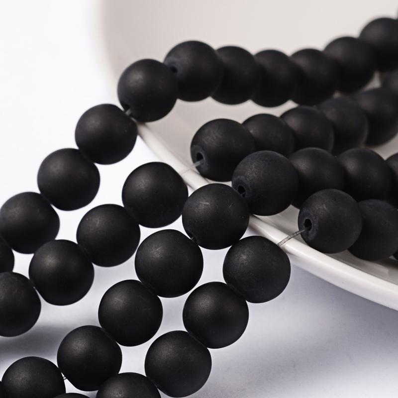 Skleněné korálky - černé - ∅ 8 mm - 10 ks