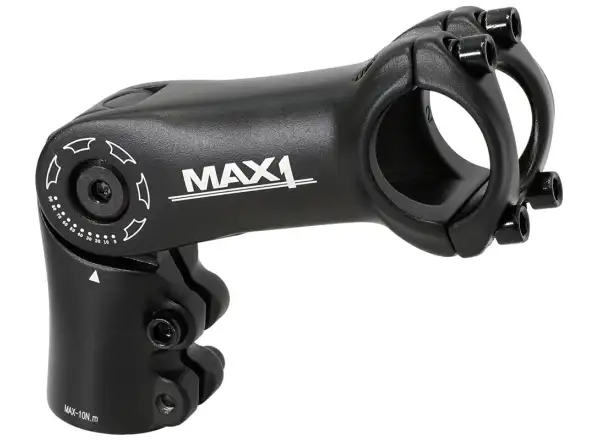 Stavitelný představec MAX1 v černém provedení nabízí ideální kombinaci pevnosti, nízké hmotnosti a širokých možností nastavení. Je vyroben z odolné hliníkové slitiny AL6061-T6 a díky průměru objímky 31,8 mm je kompatibilní s většinou moderních řídítek. Hlavní výhodou je nastavitelný úhel v rozsahu 0° až 90°, který umožňuje přesně upravit výšku a sklon řídítek podle vašich potřeb a zajistit tak pohodlnou ergonomickou pozici při jízdě. Celková hmotnost přibližně 267 g představuje velmi dobrý poměr mezi robustností a lehkostí. Díky elegantní černé povrchové úpravě navíc snadno zapadne do vzhledu jakéhokoli kola.