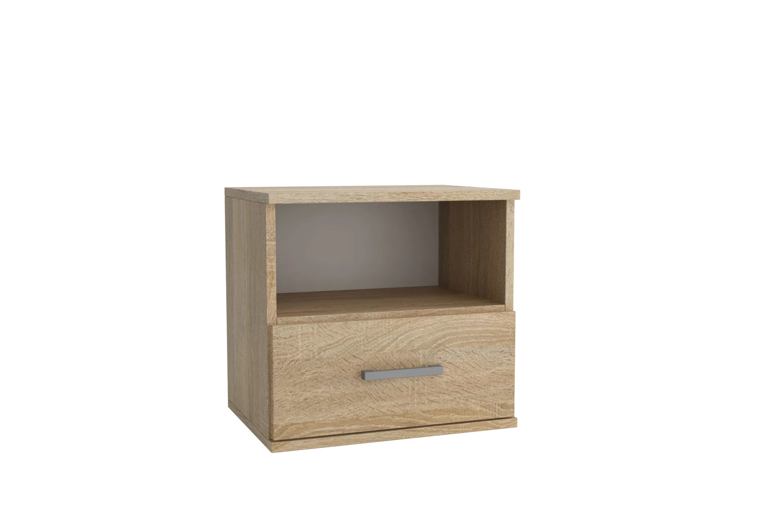 Noční stolek Goda 2 1S • Vlastnosti: Materiál Komoda je vyrobena z laminované dřevotřískové desky o síle 16 mm. Hrany desek Hrany desek jsou opatřeny ABS lištou. Zadní stěna Na zadní stěnu jsou použity sololitové desky. Úchyty Úchyty jsou plastové. • Barevné provedení Noční stolek je vyroben v odstínu dub artisan, dub sonoma, nebo v kombinaci dub sonoma a bílá. Dub artisan Dub sonoma Bílá • Rozměry 50 cm celková výška 48 cm celková šířka 35 cm celková hloubka 16 mm tloušťka desky • UpozorněníOdstíny prezentované na fotografiích jsou ilustračním materiálem, barvy se mohou lišit od vyobrazení na fotografiích podle nastavení vašeho zobrazovacího zařízení.