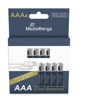MediaRange nabíjecí USB-C Li-Ion baterie Micro AAA / 500mAh / 1.5V / 4ks (MRBAT160)