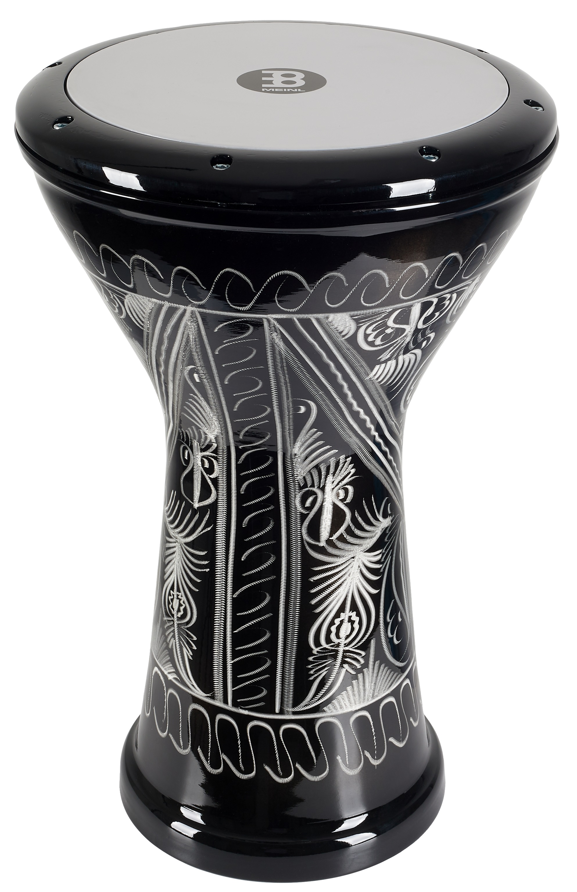 Doumbek Tento Doumbek firmy Meinl byl ručně vyroben z hliníku a nabízí velmi výrazný zvuk s orientální charakteristikou, které odpovídá i bohatá rytina na jeho povrchu. Rozměry bubnu jsou 254 x 464 mm, blána je vyrobena ze syntetického materiálu.