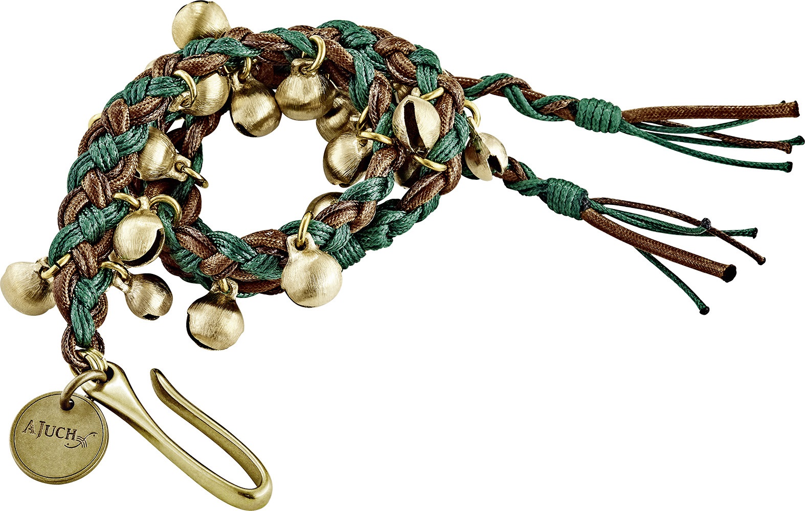 Shaker Ručně vyráběné zvonky/rolničky z lité mosazi Mein MAB Ajuch Bells jsou k dispozici ve třech velikostech tak, aby odpovídaly požadovanému ladění a tónu. Každý provaz je ručně svázaný a obsahuje pevný mosazný hák k přichycení zvonků/rolniček k hi-hatu, činelům, bubnům nebo stojanům. Balení obsahuje plátěné pouzdro pro bezpečné uschování rolniček.