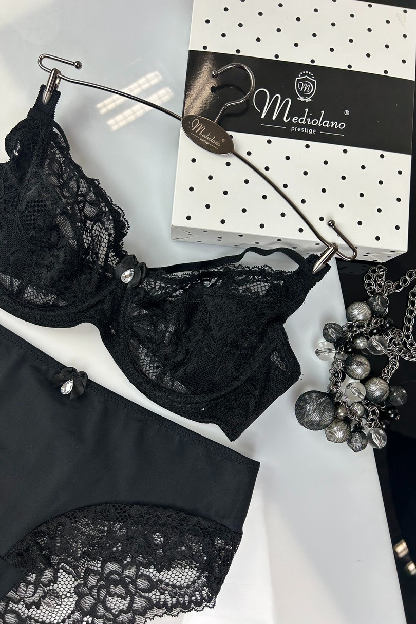 Smyslná měkká podprsenka, vyrobená výhradně z krajky, kteráójí dodává jedinečný, ženský charakter. Výstřih zdobí ozdobná ramínka, kteráójsou nastavitelná díky praktickému poutku na ramínku,– to zajišťuje dokonalé přizpůsobení a dodává moderní nádech. Bavet, rovněž vyrobený z krajky, umocňuje eleganci modelu, zatímco boční velrybí kostice poskytují dodatečnou oporu a pohodlí. Zadní část z elastického mikrovlákna zajišťuje pohodlné nošení po celý den. Podprsenka je určena pro menší a středně velká prsa. Složení: 90% polyamid, 10% elastan .