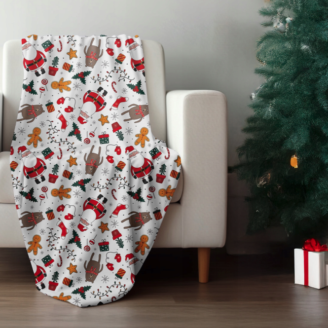Zabalte se do svátečního pohodlí s měkkou vánoční dekou. Tato lehká a mimořádně útulná deka vám přinese hřejivé pohodlí za zimních večerů, ať už si čtete knihu, sledujete film nebo odpoledne relaxujete. Deka je zdobena klasickými vánočními vzory a barvami, díky čemuž okamžitě evokuje magickou atmosféru Vánoc ve vašem domově. Díky rozměrům 150 × 200 cm poskytuje dostatek prostoru pro pohodlné zabalení. Je vyrobena z měkkého a teplého polyesteru, který je odolný proti srážení a mačkání, takže si zachová svůj vzhled po mnoho sezón. Deka může sloužit nejen jako povlak na peřinu, ale také jako stylový dekorativní přehoz na postel nebo pohovku. Je lehká a skládací, snadno se udržuje a lze ji prát v pračce na 30 °C. Díky elegantnímu designu je také skvělým tipem na vánoční dárek, který potěší každého milovníka útulné zimní atmosféry. Specifikace: Typ produktu: vánoční deka / přehoz Rozměry: 150 × 200 cm Hmotnost: 0,79 kg Materiál: polyester Barva : bílá + vícebarevná (vánoční motivy) Design: vánoční vzory, dekorativní styl Použití: prošívaná deka, přehoz, dekorace Údržba: praní v pračce na 30 °C, program na jemné praní Odolnost: proti mačkání a žmolkování