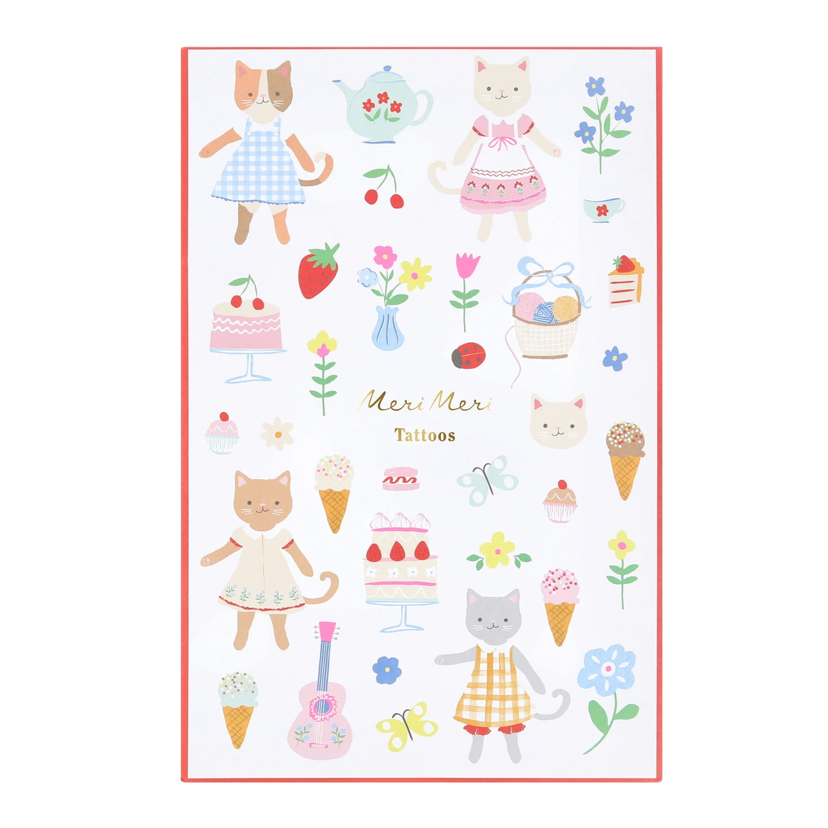 Meri Meri Dětské dočasné tetování Kitten Club – 2 archy, bílá barva, papír. Kočičí tetování od Meri Meri potěší nejednu malou parádnici! Balení obsahuje 2 aršíky s rozmanitými motivy v čele s koťátky, jejichž aplikace je zcela jednoduchá.
