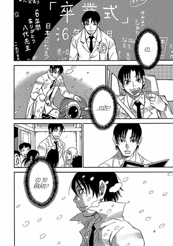 Předtucha hraničící s jistotou, že kolem Misato k něčemu dojde... Satoru a Jaširo pronásledují auto patřící Potravinám Širatori. Po cestě vedou rozhovor, který působí jako povídání otce se synem... Pak ale Satoru udělá něco, kvůli čemu atmosféra v autě zhoustne. A Jaširo vysloví větu: „Tohle není moje auto.“ Satoru neví, jak takové sdělení uchopit. „Co tím ten člověk myslí?“ Co se skrývá za učitelovými slovy? A co znamenala Satoruova předtucha?!