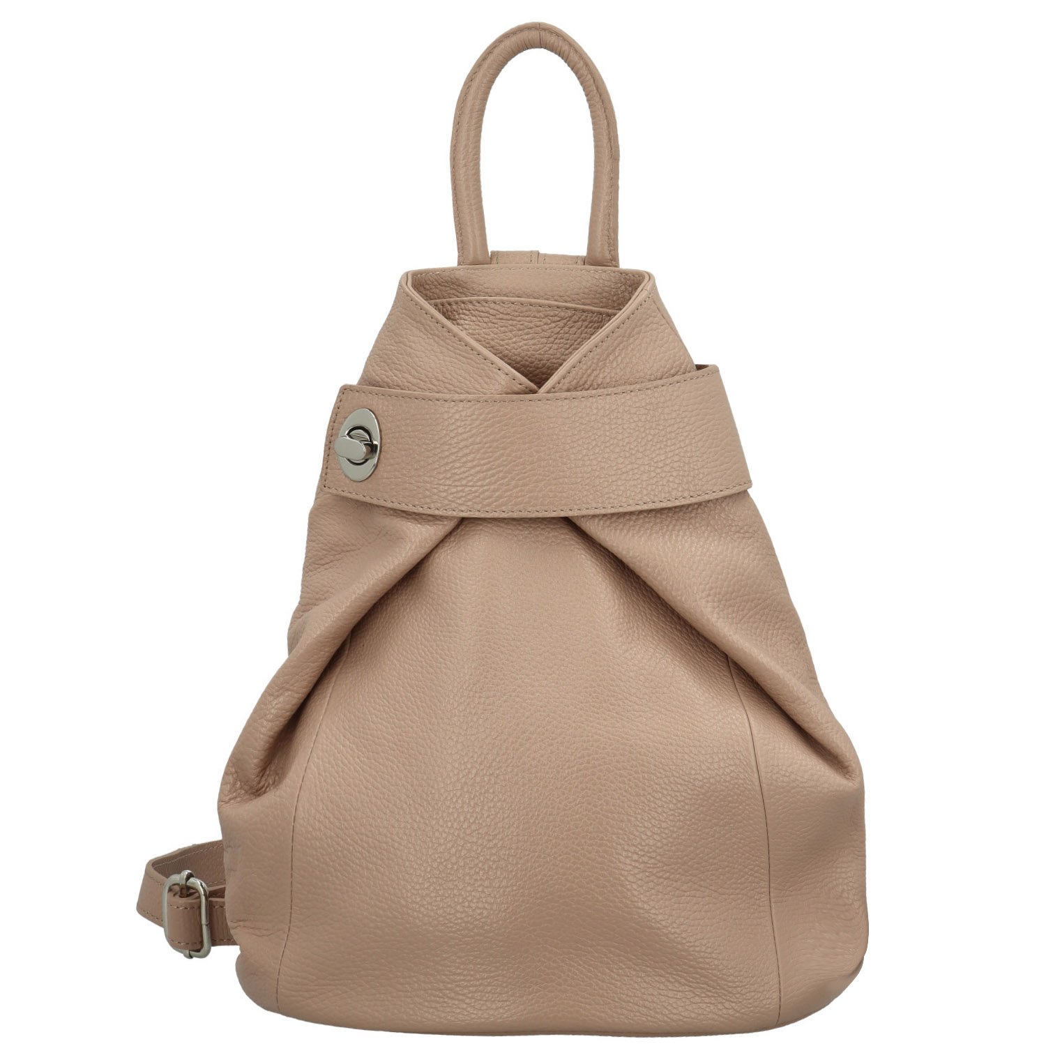 Po rozevření poutka na kovový zámeček, získáte prostor pro vaše osobní věci. Uvnitř nechybí postranní kapsičky v podšívce a to vše zajistíte i zipem. Na zadní straně poslední zipová kapsička. Ucho je pevné a krátké do ruky či na pověšení.