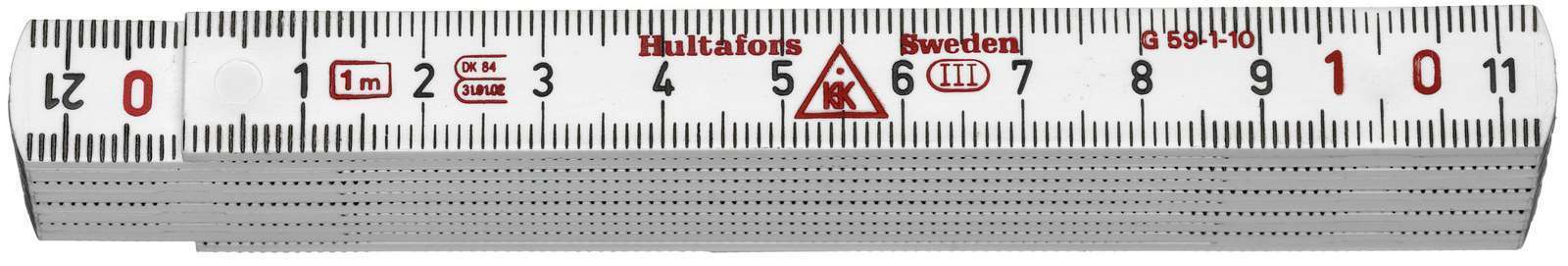Skládací metr vyrobený z polyamidového skelného laminátu, který zajišťuje zvýšenou odolnost vůči vlhku.