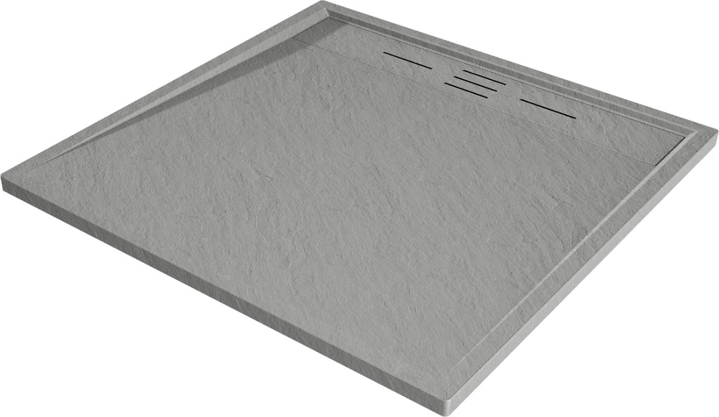 Technická data: Rozměr: 90x90x3 cm Šedá barva Typ: čtvercový, ultra plochý Instalace: Do podlahy nebo na podlahu Materiál: SMC - plast Kamenná struktura Možnost řezání sprchové vaničky Odolný výrobek, který se nedeformuje Maximální stabilita díky dobré odolnosti proti nárazu Sada obsahuje sifon, který se čistí shora Průměr odtoku: 90 mm Povrchová úprava mřížky: šedá