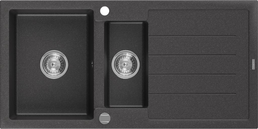 MEXEN/S - Enzo granitový dřez s odkapávačem včetně baterie Telma, černá/zlatá 6506-75-670200-70-B