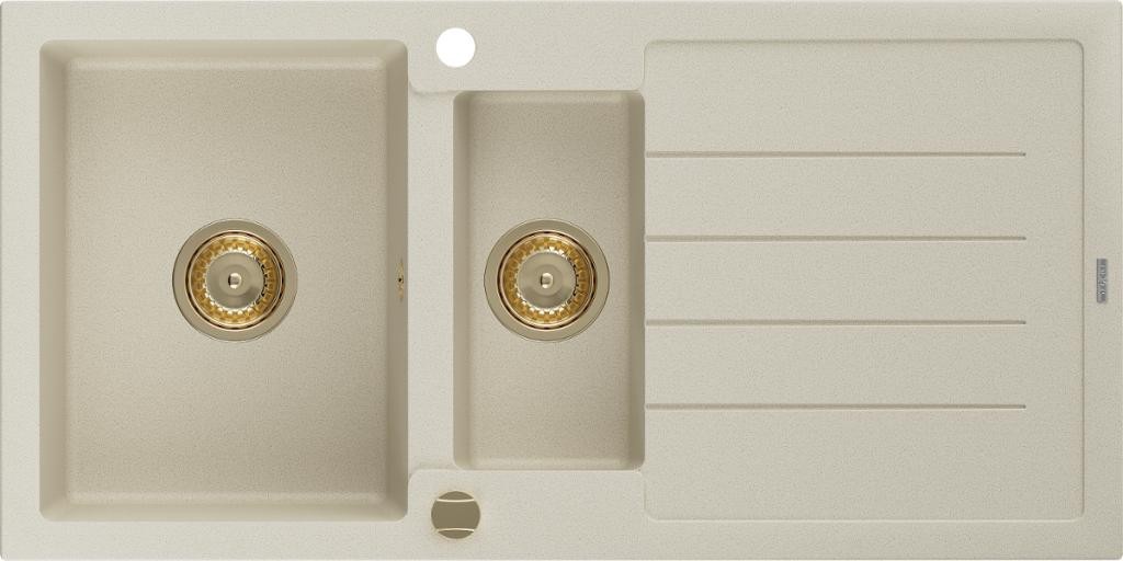 MEXEN/S - Diego granitový dřez 1 488 x 480 mm, béžová, + zlatý sifon 6512481000-69-G