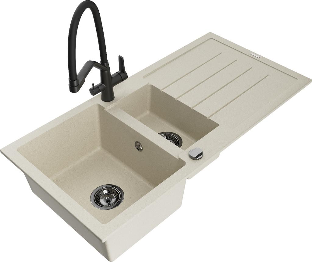 MEXEN/S - Andres granitový dřez s odkapávačem včetně baterie Elia, bílá 6515-20-670101-20
