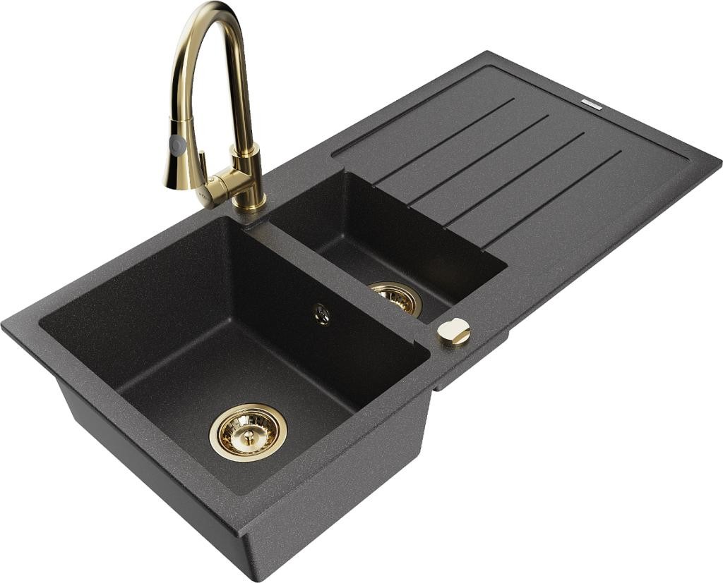 MEXEN/S - Kevin granitový dřez 1-miska včetně baterie Duo, černá 6517-77-671701-57-G