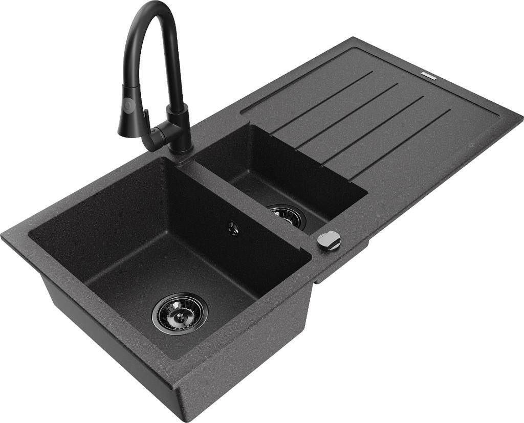 MEXEN/S - Diego granitový dřez 1-miska včetně baterie Savita, černá/stříbrná metalik 6512-73-672601-00