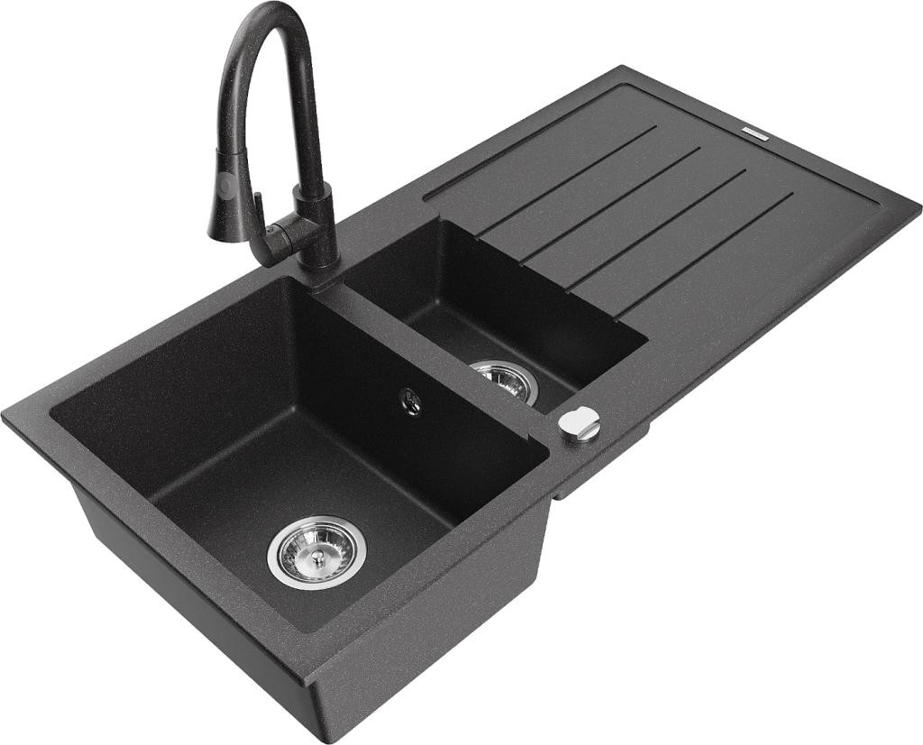 MEXEN/S - Gaspar granitový dřez 1.5 s odkapávačem včetně baterie Flora, černá/stříbrná 6507-73-670401-57-G