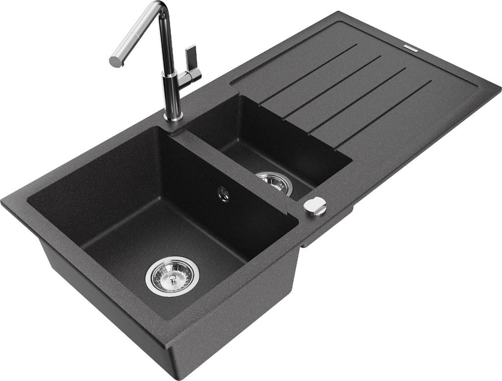 MEXEN/S - Leo granitový dřez 1 s odkapávačem včetně baterie Telma, šedá 6501-71-670200-00