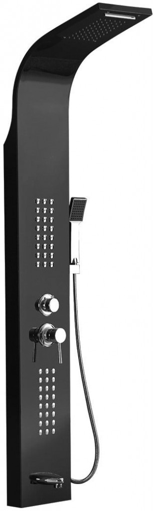 Specifikace produktu: Materiál: Nerezová ocel Barva: Černá Výška: 148 cm Šířka: 22 cm Počet funkcí: 4 Výlevka je umístěna ve spodní části panelu 1-funkční sprchová hlavice Hadice s nerezovým krytem, 150 cm Silikonové trysky Anti-Calc usnadňují odstraňování vodního kamene