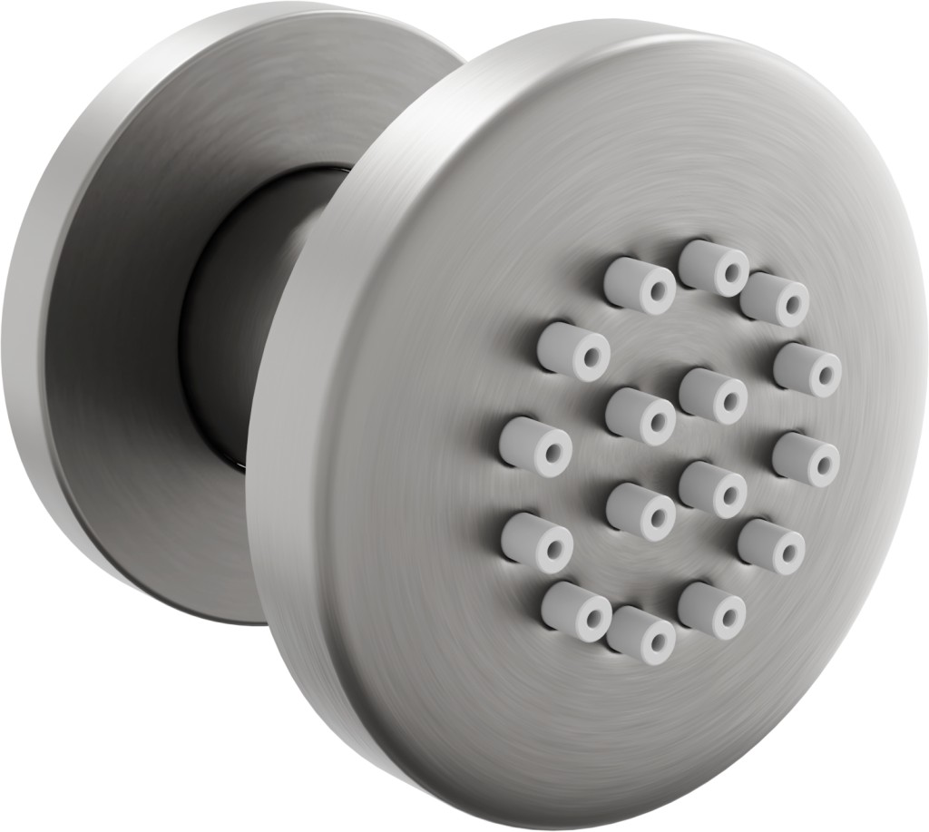 Specifikace produktu: Materiál: Mosaz: Tvar: kulatý Typ: Přisazené, boční Barva: grafit Rozměry: ø50 mm Vzdálenost od zdi: 40 cm Standardní připojení: G 1/2 " Povrch trysky je odolný proti poškrábání a korozi Silikonové trysky Anti-Calc usnadňují odstranění vodního kamene