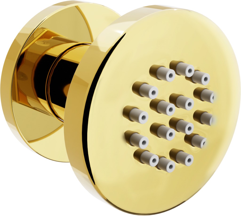 Specifikace produktu: Materiál: Mosaz: Tvar: kulatý Typ: Přisazené, boční Barva: zlatá Rozměry: ø50 mm Vzdálenost od zdi: 40 cm Standardní připojení: G 1/2 " Povrch trysky je odolný proti poškrábání a korozi Silikonové trysky Anti-Calc usnadňují odstranění vodního kamene