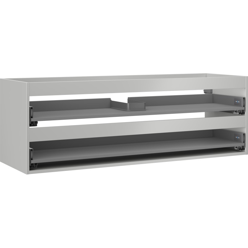 Specifikace produktu: Šířka: 140 cm Hloubka: 44,2 cm Výška: 47 cm Barva: Matně šedá Typ: Závěsné Materiál: Lakovaná deska Počet zásuvek: 2 Vodítka s funkcí tlumeného dovírání Plný výsuv pro snadný přístup k obsahu zásuvky Povrch odolný vůči UV záření Kombinovatelný s dvířky ze série Orio, Rivel Produkt smontovaný