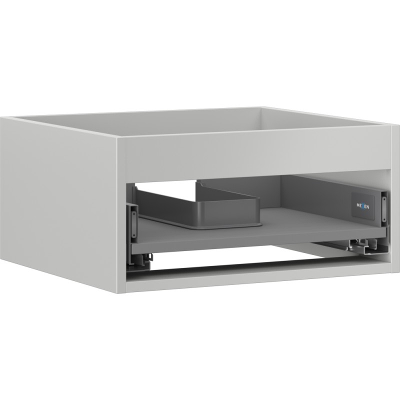 Specifikace produktu: Šířka: 50 cm Hloubka: 44,2 cm Výška: 23,5 cm Barva: Matně šedá Typ: Závěsné Materiál: Lakovaná deska Počet zásuvek: 1 Vodítka s funkcí tlumeného dovírání Plný výsuv pro snadný přístup k obsahu zásuvky Povrch odolný vůči UV záření Kombinovatelný s dvířky ze série Orio, Rivel Produkt smontovaný