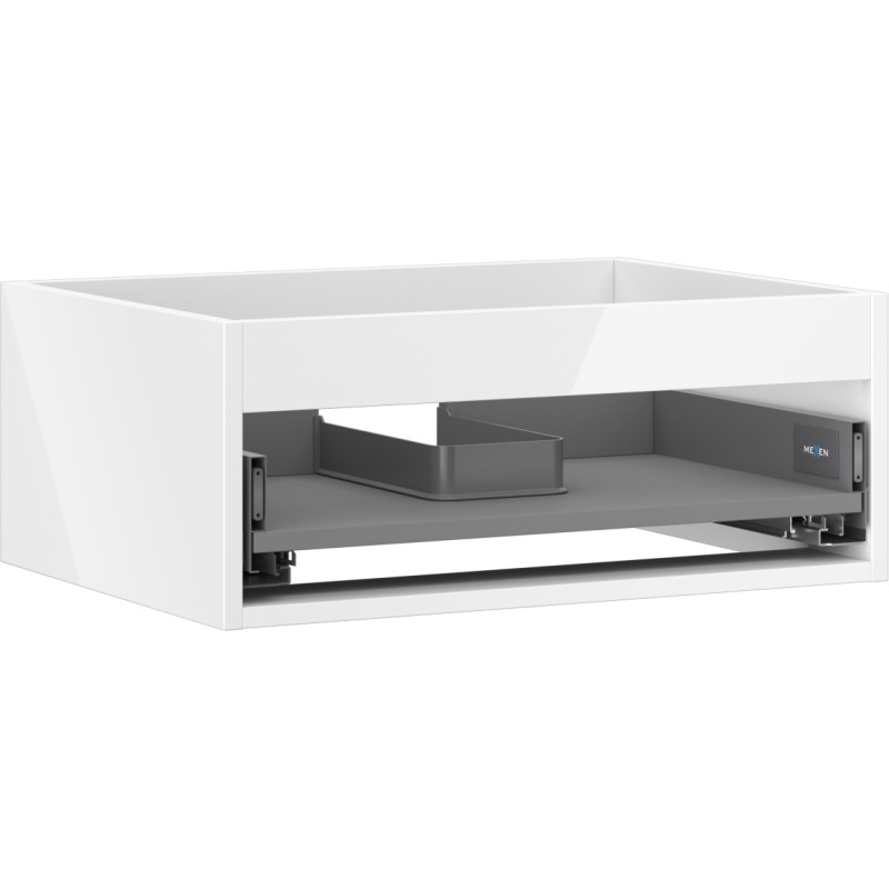 Specifikace produktu: Šířka: 60 cm Hloubka: 44,2 cm Výška: 23,5 cm Barva: Lesklá bílá Typ: Závěsný Materiál: Lakovaná deska Počet zásuvek: 1 Vodítka s funkcí tichého zavírání Plný výsuv pro snadný přístup k obsahu zásuvky Povrch odolný vůči UV záření Lze kombinovat s dvířky ze série Orio a Rivel Sestavený produkt