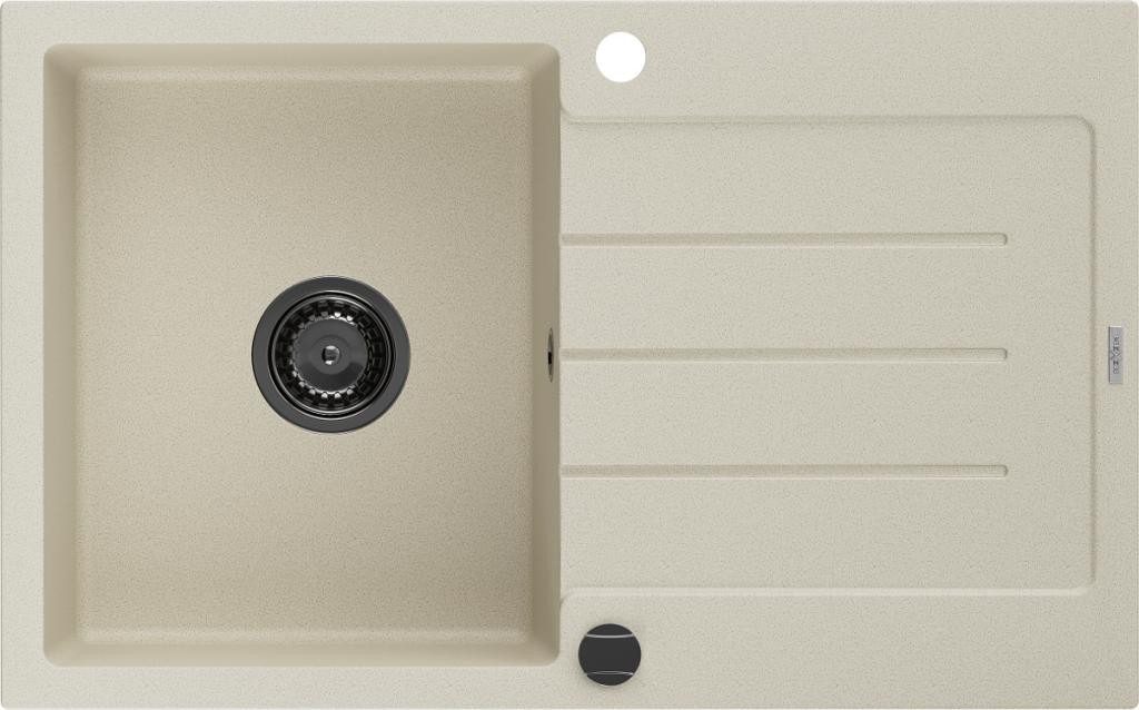 Technická data: Rozměr: 795 x 495 x 200 mm Hloubka komory: 200 mm Rozměry komory: 440x360 mm Průměr odtoku: ø90 mm Typ: 1-miska s odkapávačem Typ: Zapuštěné do pracovní desky Materiál: žula Barva béžová Povrchová úprava sifonu: černá Přepadový otvor: Ano Otvor pro baterii: Ano Včetně automatického sifonu Vysoká odolnost proti poškrábání a změně barvy Odolnost proti tepelným šokům Snadno čistitelný povrch Dva dodatečné vyfrézované otvory pro...