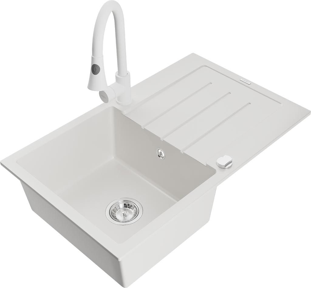 MEXEN/S - Leo granitový dřez s odkapávačem včetně baterie Duero, černá/stříbrná metalik 6501-73-671600-70