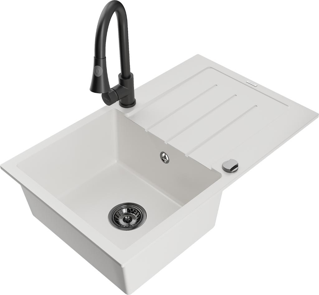 MEXEN/S - Leo granitový dřez 1 s odkapávačem včetně baterie Aster, bílá 6501-20-73450-02