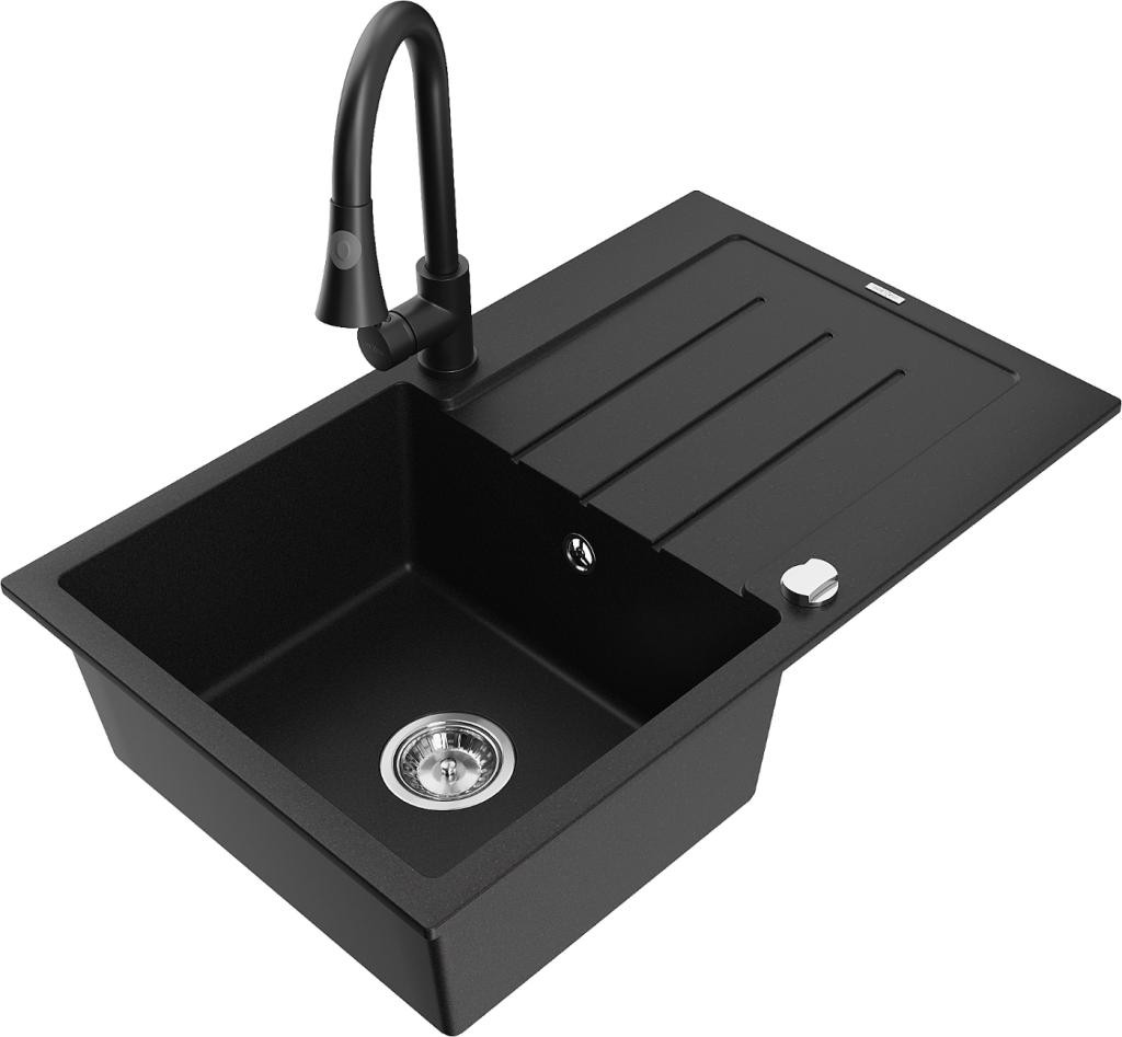 MEXEN/S - Enzo granitový dřez s odkapávačem včetně baterie Duo, černá/zlatá metalik 6506-75-671701-70-B