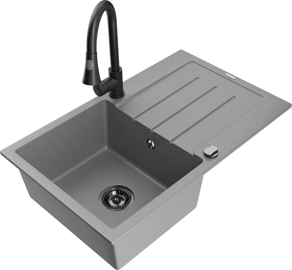 MEXEN/S - Gaspar granitový dřez 1.5 s odkapávačem včetně baterie Aster, šedá 6507-71-73450-07