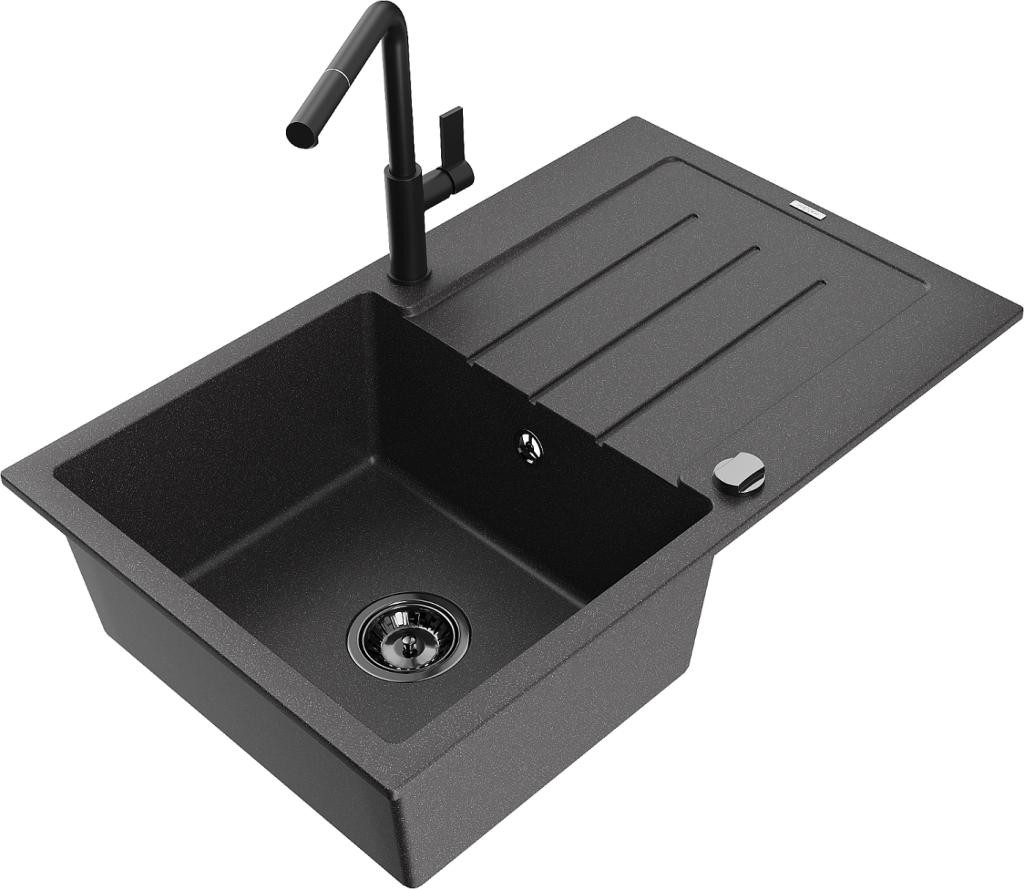 MEXEN/S - Andres granitový dřez s odkapávačem včetně baterie Rita, černá 6515-77-670300-50