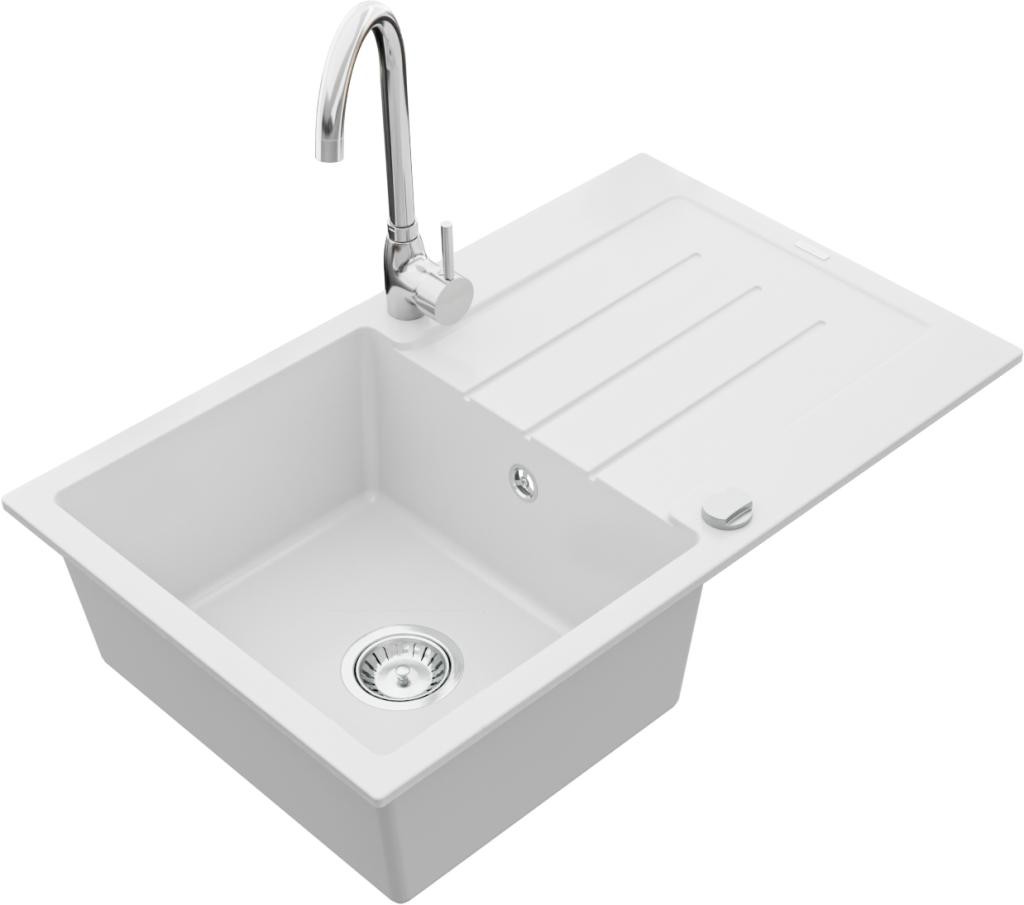 MEXEN - Bruno granitový dřez 1 s odkapávačem včetně baterie Telma, bílá 6513-20-670200-00