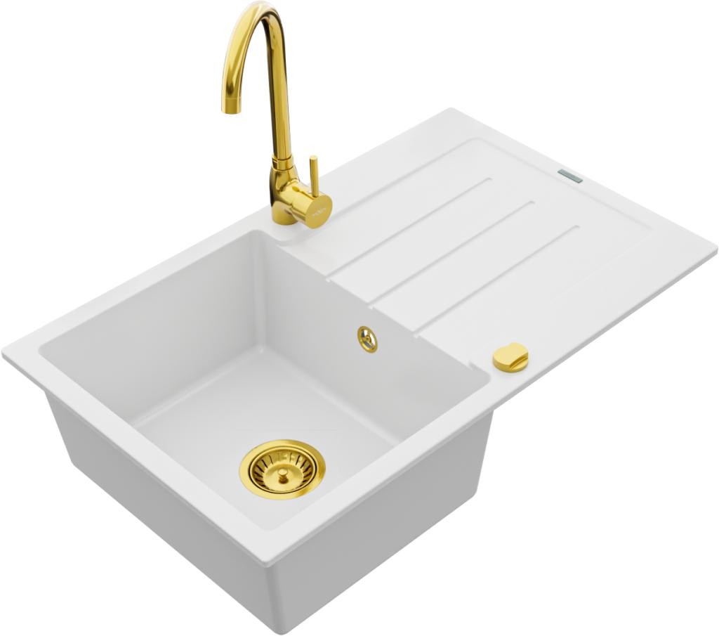 MEXEN/S - Pablo granitový dřez 1 s odkapávačem včetně baterie Savita, černá/zlatá metalik 6510-75-672601-50