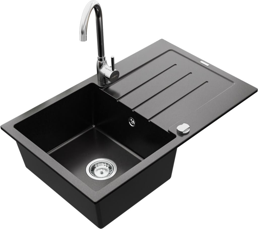 MEXEN/S - Pablo granitový dřez 1-miska s odkapávačem včetně baterie Rita, černý/stříbrný metali 6510-73-670300-00