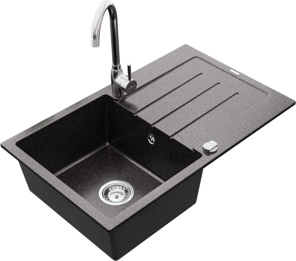 MEXEN/S - Leo granitový dřez s odkapávačem včetně baterie Telma, černá 6501-77-670200-50-B