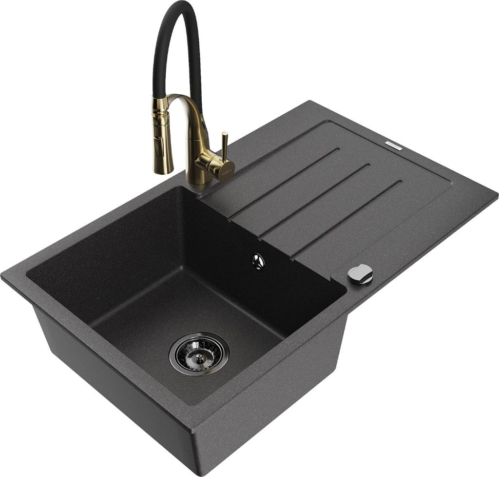 MEXEN/S - Andres granitový dřez s odkapávačem 1000 x 500 mm černá/zlatá metalik, černý sifon 6515101510-75-B