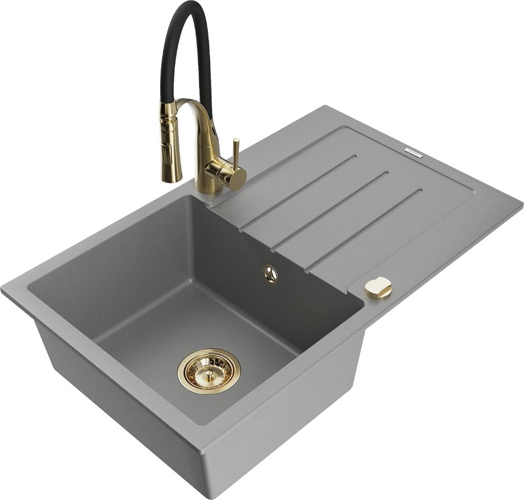 MEXEN/S - Andres granitový dřez s odkapávačem včetně baterie Savita, šedá 6515-71-672601-70-B