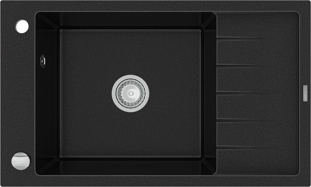 MEXEN/S - Bruno granitový dřez s odkapávačem včetně baterie Duo, černá kropenatá 6513-76-671701-57-G