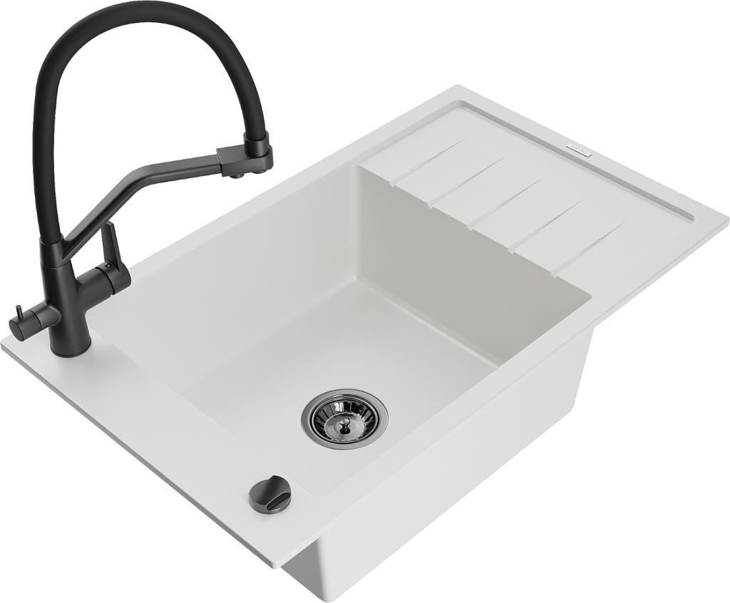 MEXEN/S - Elias granitový dřez 1-miska včetně baterie Duero, bílá 6511-20-671600-20
