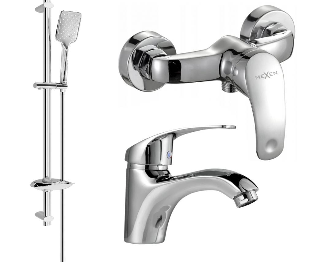 Technická data: Materiál umyvadlové baterie: mosaz Povrchová úprava: Chrome Hlava: Keramická Perlátor: Ano Výška: 130 mm Rozsah výtoku: 140 mm Materiál sprchové baterie: mosaz Povrchová úprava: Chrome Hlava: Keramická Šířka: 170 mm Materiál hřídele: Nerezová ocel, ABS Povrchová úprava tyče: Chrome Výška: 750 mm Šířka lišty: 29 mm Vzdálenost od stěny: 165 mm Miska na mýdlo Posuvný držák na sluchátko Nastavitelné montážní držáky Materiál sluchátek: Plast Povrchová úprava sluchátek: Chrome Počet...