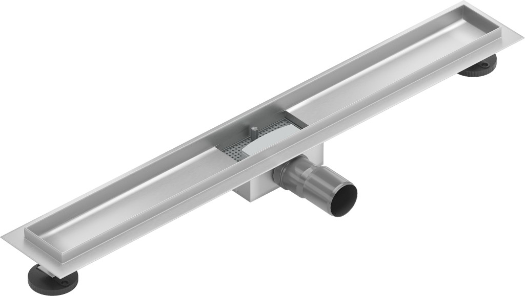 Technická data: Materiál: nerezová ocel AISI 304 Povrchová úprava: Chrome Šířka: 80 cm Hloubka montáže: 52 mm Kapacita: 50 l / min Doplňte mřížkami M Zahrnuta: Montážní stabilizátory Nastavitelné nohy Vyjímatelný filtr nečistot Kulatý límec - 2 cm Sifon zastavující zápach Žlab na odvod vody Redukce 50/40 mm