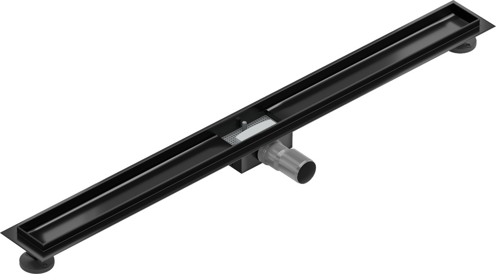 Technická data: Materiál: nerezová ocel AISI 304 Povrchová úprava: černá Šířka: 90 cm Montážní hloubka: 52 mm Kapacita: 50 l / min Doplní se M panely Zahrnuta: Montážní stabilizátory Nastavitelné nožičky Vyjímatelný filtr na nečistoty Kulatý límec - 2 cm Sifon zadržující zápach Žlab pro odvod vody Snížení 50/40 mm