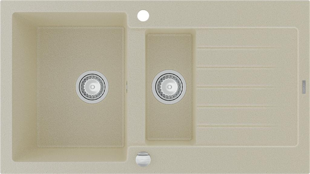 MEXEN/S - Elias granitový dřez 1 s odkapávačem včetně baterie Aster, béžová 6511-69-73450-07
