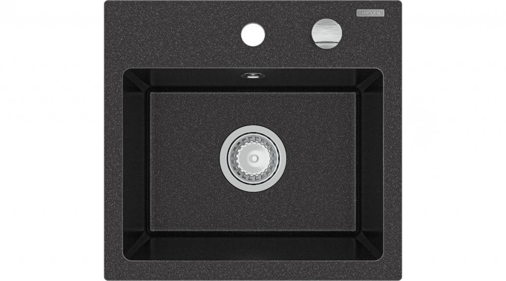 MEXEN/S - Milo granitový dřez 1-miska včetně baterie Carla, černá/zlatá metalik 6505-75-670700-70