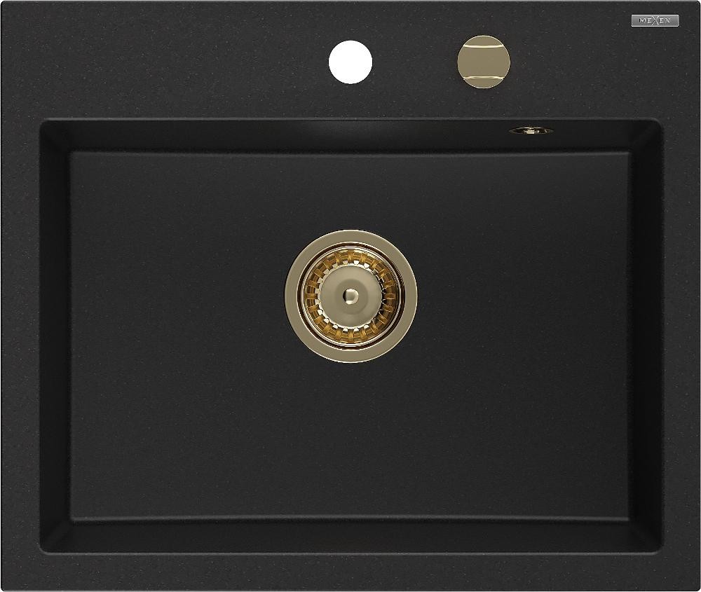 MEXEN/S - Bruno granitový dřez s odkapávačem včetně baterie Duo, černá/zlatá metalik 6513-75-671701-57-B